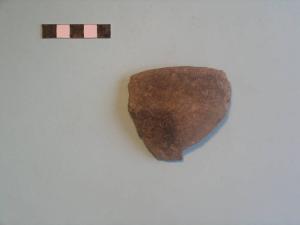 Frammento di scodella carenata, orlo arrotondato, parete esoversa rettilinea, carena arrotondata, vasca leggermente convessa.