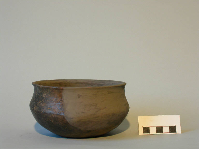 Scodella carenata frammentaria, orlo arrotondato, labbro leggermente esoverso, parete rastremata rettilinea, vasca a calotta, ampio fondo ombelicato.