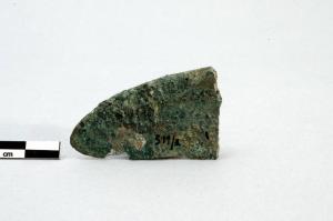 Punta e lama di falcetto arcuato in bronzo con debole costolatura superiore.