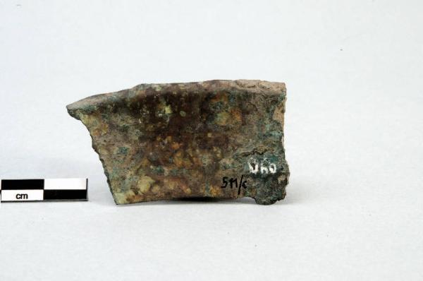 Lama/fr. di falcetto arcuato in bronzo con debole costolatura superiore.