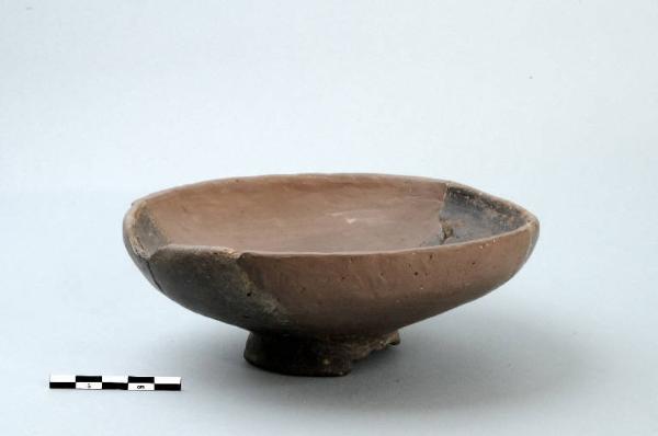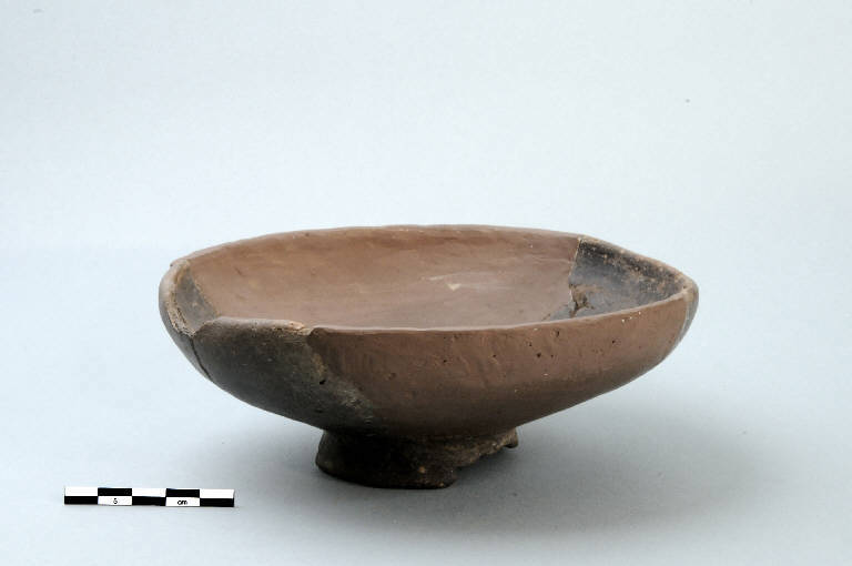 Coppa in ceramica comune con orlo indistinto lievemente introflesso; la vasca è emisferica e profonda. Il piede è ad anello.
