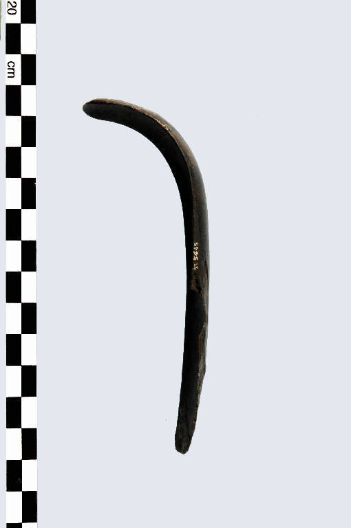 Strigile in ferro fatto di un unico pezzo di lamina; si conserva la ligula (cucchiaio), di forma ricurva, sottile ed allunganta; è privo del capulsus (manico). La morfologia della ligula è simile a quella di alcuni manufatti rinvenuti a Misano di Gera d'Adda (Bg).