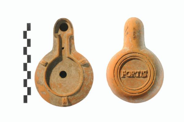 Lucerna a canale aperto con due borchiette sulla spalla, tipo Loeschcke X-a.
