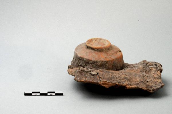 Coppetta in terra sigillata carenata, parete leggermente obliqua con orlo ingrossato e ribattuto verso l'esterno, piede ad anello.