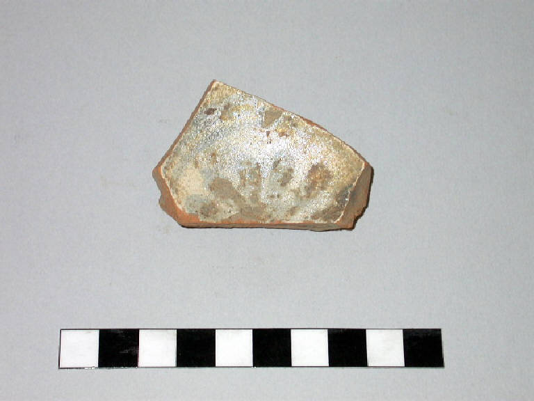 Frammento di fondo di ciotola in ceramica ingobbiata, dipinta ed invetriata con piede a disco leggermente concavo