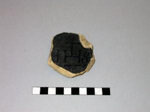 Frammento di coppetta in maiolica con fondo con piede a disco