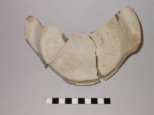 Tazza con corta tesa in ceramica ingobbiata mancante di colori e vetrina