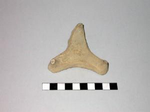 Frammento di treppiede in terracotta conformato a zampa di gallo, usato come distanziatore di cottura