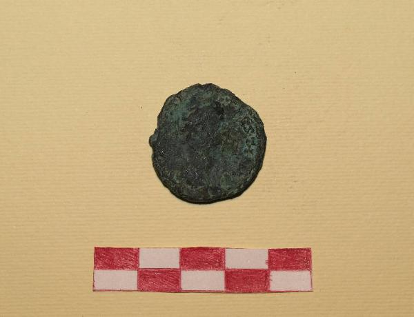 Moneta romana in bronzo, foremente usurata e trattata con acido