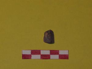Lamella in selce di colore grigio, a sezione riangolare. Frammentata alle due estremità.