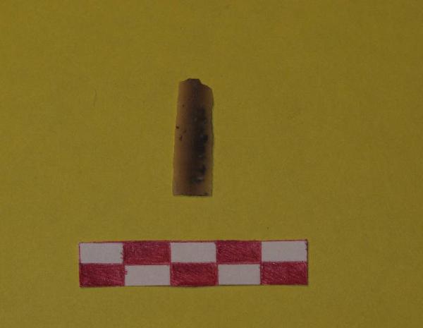 Lamella in selce di colore beige, a sezione triangolare.