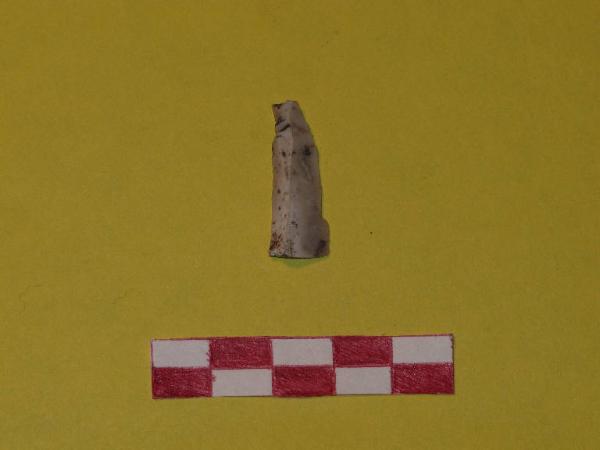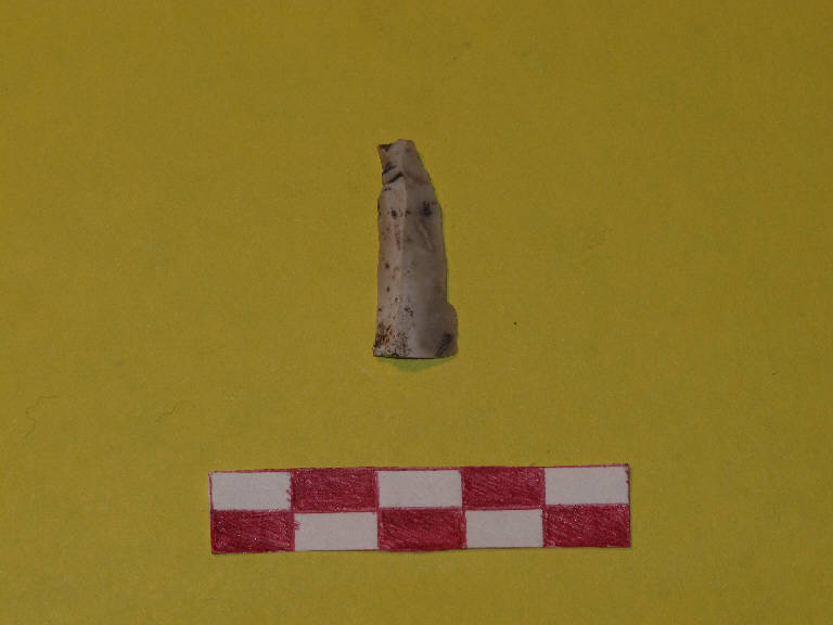 Lamella in selce bianca, a sezione triangolare. I margini si restringono verso una delle estremità.
