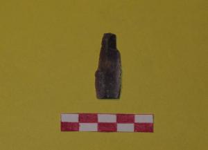 Lamella in selce di colore grigio-rosa, a sezione triangolare. Integro.