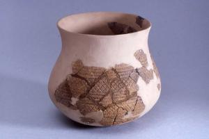 Vaso campaniforme reintegrato. Superfici color camoscio.