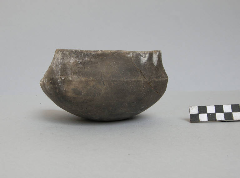 Ciotola carenata, prodotta con ceramica d'impasto mediamente depurata con inclusi micacei, color grigio, avente orlo arrotondato, parete distinta, vasca a calotta e fondo lievemente concavo.