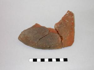 Frammento di fondo piano, pertinente a vaso, con decorazione "a stella" formata da un fascio di 3 linee incise e chiusa da segni circolari impressi lungo il perimetro del fondo.