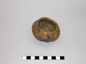 Vasetto miniaturistico carenato a fondo convesso e parete a tronco di cono.