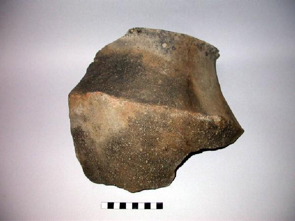 Frammento di grande vaso biconico con orlo estroflesso. Presenta due piccole prese a linguetta sulla carenatura, ovvero, nel punto di massima espansione.