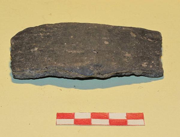 Frammento di orlo e parete pertienti a tazza carenata, prodotta in ceramica di impasto mediamente depuarata.