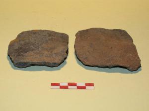 Frammento di orlo e parete pertiente a tazza carenata, prodotta in ceramica di impasto mediamente depuarata. Presenta due fasce di incisioni orizzontali sulla parete.