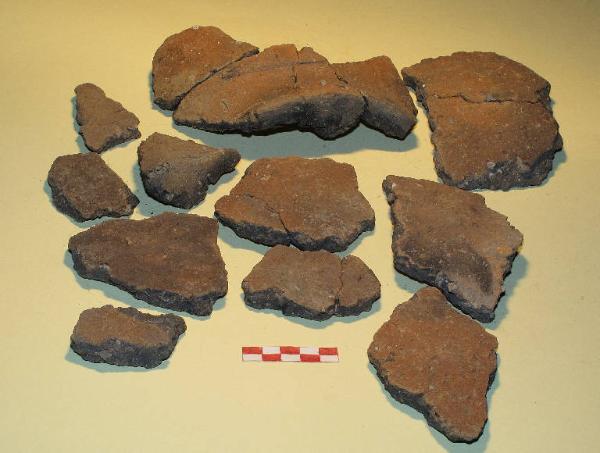17 Frammenti pertienti a vaso troncoconico, prodotto in ceramica di impasto grossolana.