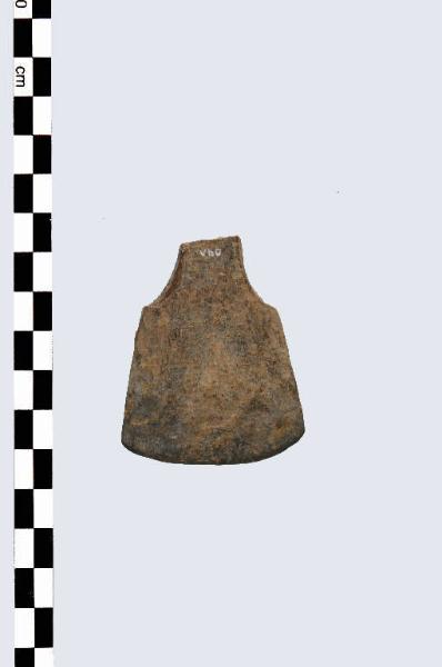 Manufatto prodotto in osso, di tipo C, con stacco netto tra impugnatura e tagliente di forma quadrangolare e convesso, che risulta particolarmente levigato. Manca l'impugnatura.