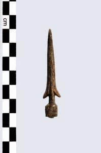 Punta di freccia, di tipo D, a sezione romboidale, terminante con due alette appuntite. Tra punta e peduncolo è presente un collarino nettamente definito.