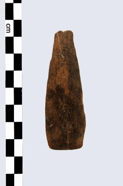 Spatola, di tipo A, a profilo approssimativamente triangolare senza distinzione tra impugnatura e tagliente, estremità distale leggermente convessa.