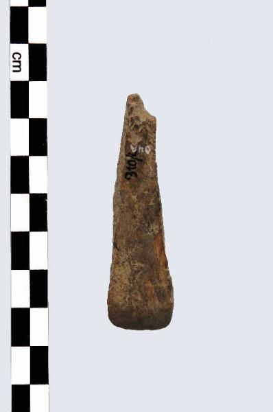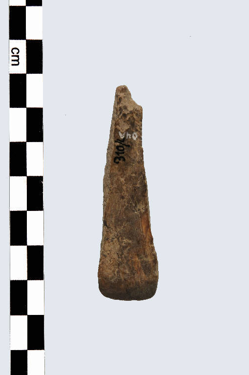 Spatola, di tipo A, a profilo approssimativamente triangolare senza distinzione tra impugnatura e tagliente, estremità distale rettilinea.