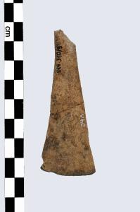 Spatola, di tipo A, a profilo approssimativamente triangolare, senza distinzione tra impugnatura e tagliente, estremità distale leggeremente convessa.
