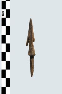 Punta di freccia arpionata con 3 alette chiuse, di tipo I, a sezione pseudo-circolare, con collarino ben definito tra punta e peduncolo. Arpione lacunoso.