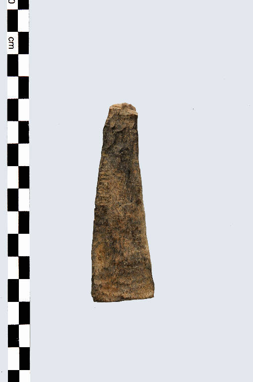 Spatola, di tipo A, a profilo approssimativamente triangolare, senza distinzione tra impugnatura e tagliente, estremità distale piatta.