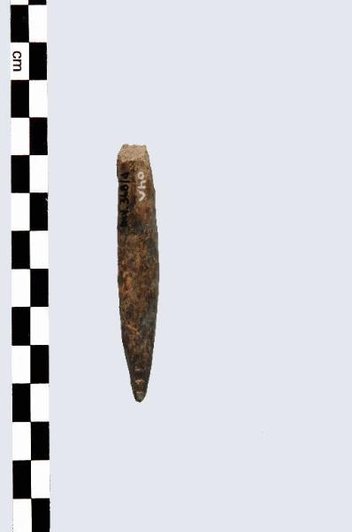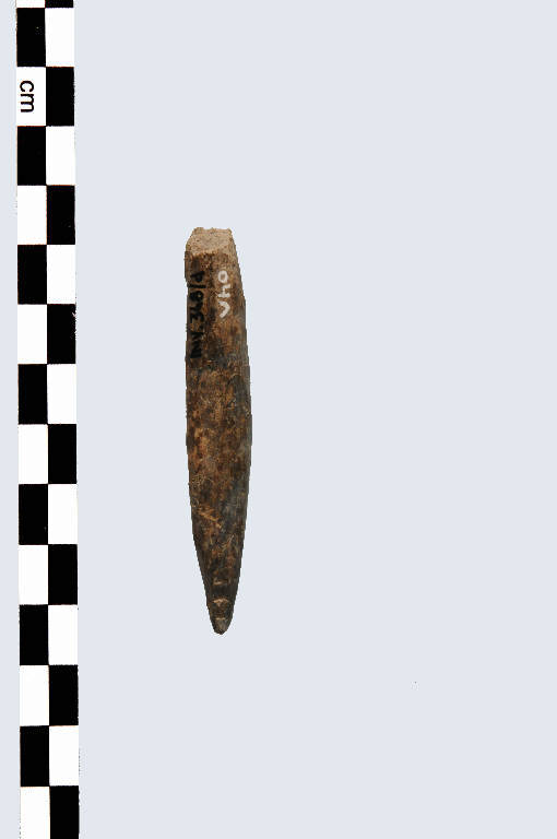 Punteruolo, a sezione pseudo-circolare, caratterizzato da una estremità prossimale, mancante, costituita dall'epifisi, che fungeva probabilmente da impugnatura, e da una estremità appuntita e levigata.