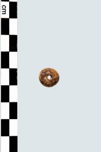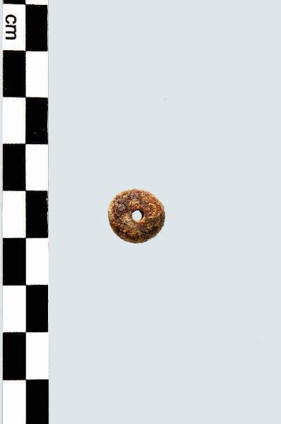 vago di collana discoidale regolare con foro passante.