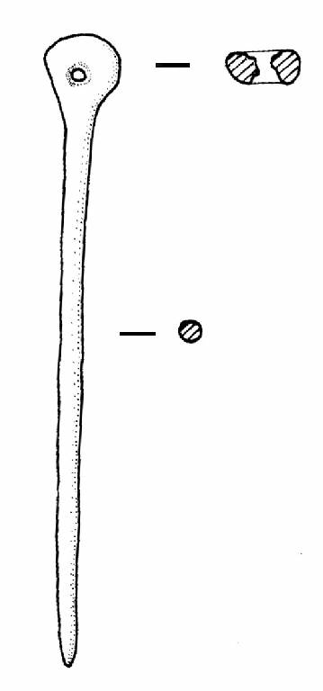 Capocchia anulare; foro passante cilindrico; gambo diritto a sezione circolare.