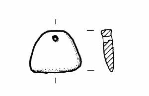 Forma trapezioidale. Picco foro passante del tipo a "V" in corrispondenza della base minore.