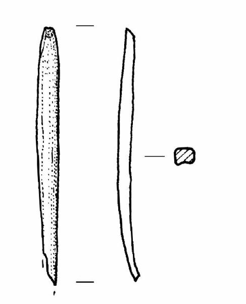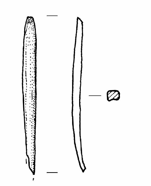 Sezione concavo-convessa. Estremità prossimale appiattita a "becco di flauto".