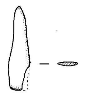 Estremità prossimale triangolare. Tagliente quasi rettilineo assottigliato.