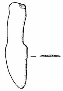 A lingua di presa. Estremità prossimale rettilinea. Taglio appuntito e assottigliato.