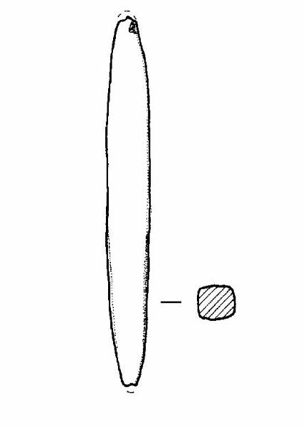 Forma allungata e sezione quadrangolare. Estremità arrotondate.