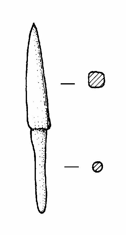 Punta a sezione quadrangolare. Peduncolo appuntito a sezione circolare.
