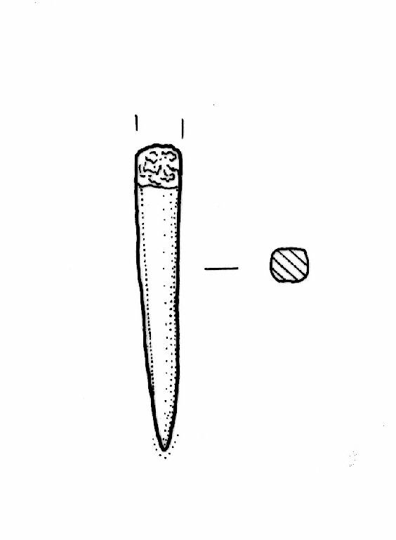 Sezione quadrata. Tracce d'usura lucida in prossimità della punta.