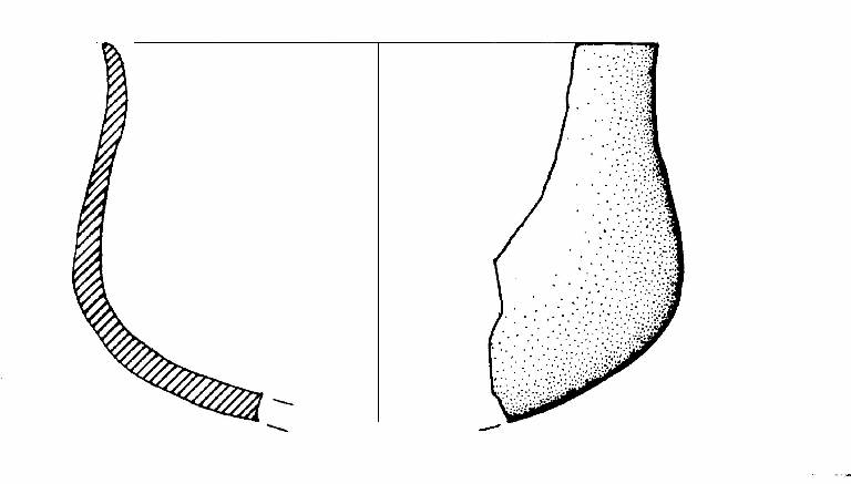 Orlo assottigliato lievemente estroflesso; parete sinuosa. Colore: grigio e rossiccio.