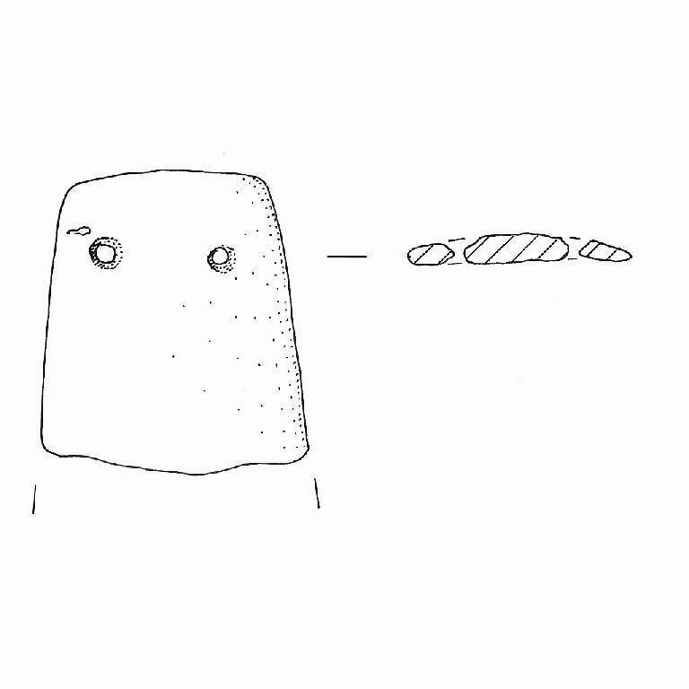 Profilo trapezioidale; in prossimità del lato corto, due fori passanti circolari del tipo a "clessidra".