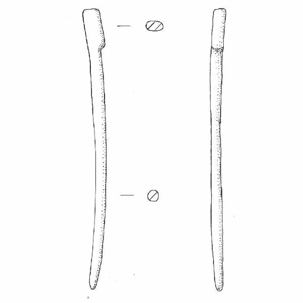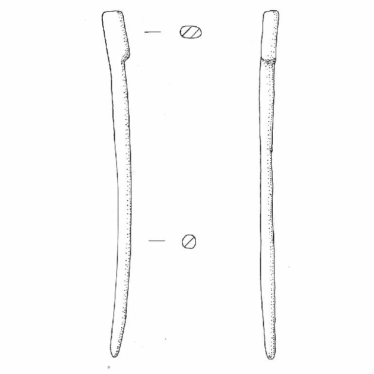 Spillone a testa prismatica laterale; capocchia a sezione quadrangolare e spigoli arrotondati. Gambo a sezione circolare.