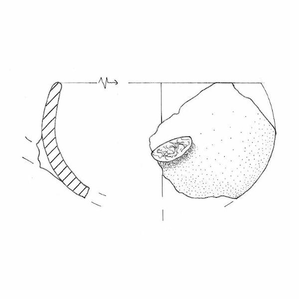 Orlo di forma arrotondata obliquo verso l'interno. Ansa nastriforme impostata obliquamente. Colore:grigio molto scuro.