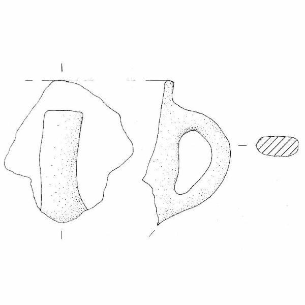 Ansa nastriforme impostata poco sotto l'orlo. Colore: grigio molto scuro.