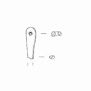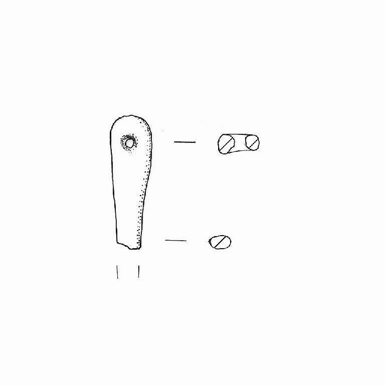 "Spillone" a capocchia ovale e foro passante circolare del tipo a "clessidra". Gambo a sezione ovale.