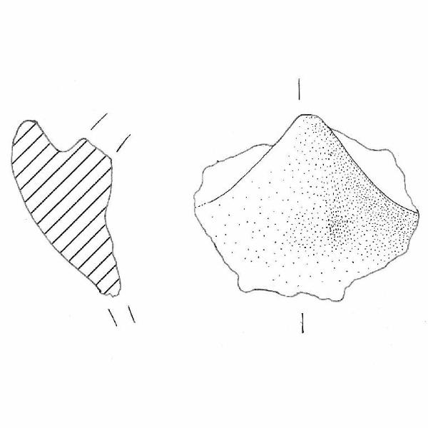 Parete con bugna a linguetta triangolare. Colore superficie: marrone molto pallido.