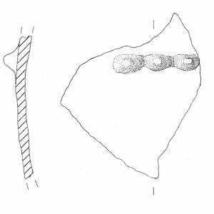 Decorazione plastica rappresentata da tre bugnette coniche. Colore superficie: grigio rosa.
